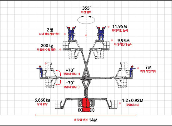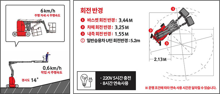 인체공학적으로 설계된 텔레스코픽 굴절 붐이 탑재되어 장비 이동은 최소화하고 넓은 작업반경을 제공함으로써 수익성을 높여줍니다