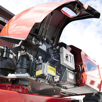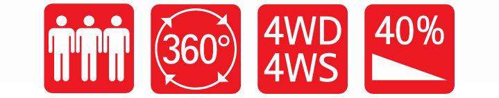 구보다 46마력 엔진, 4륜구동 기능, 유압식 후방 서스펜션, 3가지 조향모드가 탑재되어 지면이 고르지 않거나 다소 거친 지형에 진입하여 작업할 수 있습니다.