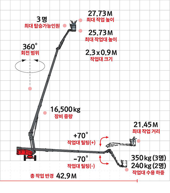 교량공사, 플렌트 공사, 풍력발전소 신축 현장, 화력발전소 내화보수현장 등 각종 대형 현장에 적합한 장비입니다.