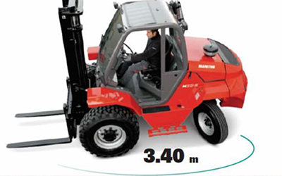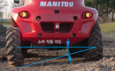 4륜구동 지게차 중 가장 작은 회전 반경을 가지고 있으며 유일하게 4륜 서스펜션이 적용되어 있습니다